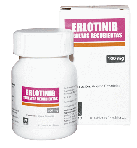 ANTINEOPLÁSICO Información del ProductoVía de Administracion: OralIndicaciones: Tratamientos de pacientes con cáncer pulmonar metastásico de celulosa no pequeñas o cáncer pulmonar localmente avanzado después del fracaso de al menos un régimen anterior de quimioterapia indicado para el tratamiento de primer linea de pacientes con cáncer de pancreas localmente avanzado, no extirpable o metastásico.Presentación: Caja con 10 y 100 tabletas recubiertas en blíster e inserto, caja con frasco con 30 tabletas recubiertas e inserto.Modalidad de Venta: Bajo prescripción médica.Marca de Referencia: TARCEVA®Laboratorio Fabricante: NAPROD LIFE SCIENCES PVT LTD INDIA.