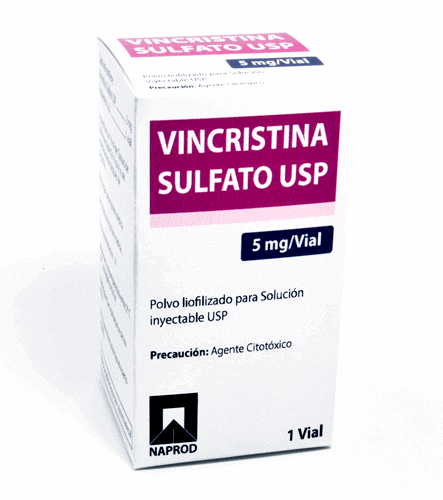 ANTINEOPLÁSICO Información del ProductoVía de Administracion: IntravenosaIndicaciones: Regímenes de quimioterapia de combinación para la leucemia aguda y enfermedad/Hodgkin, linfoma de burkitt, tumor de Wilms, mieloma, neuroblastoma, rabdomiosarcoma, tumores sólidos, incluyendo carcinoma de mama, cabeza, cuello y pulmón, purpura trombocitopenica, idiopática refractaria.Presentación: Caja con vial de polvo liofilizado e inserto.Modalidad de Venta: Bajo prescripción médica.Marca de Referencia: Oncovin®, Vincasar® PFS, Vincrex®Laboratorio Fabricante: NAPROD LIFE SCIENCES PVT LTD INDIA.