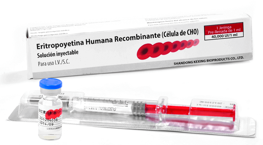 HEMATOPOYÉTICO Información del ProductoVía de Administracion: IntravenosaIntramuscularIndicaciones: Tratamiento de la anemia sintomática asociada a la insuficiencia renal crónica (IRC) en los pacientes adultos y pediátricos. Tratamiento de la anemia y reducción de las necesidades de transfusión en pacientes adultos que reciben quimioterapia para tumores sólidos, linfoma maligno o mieloma múltiple y con riesgo de transfusión, se emplea para reducir la necesidad de llevar a cabo a las transfusiones de sangre previas a una cirugía ortopédica mayor en pacientes adultos.Presentación: Caja con 6 jeringas prellenadas con 1ml de solución inyectable e inserto. Caja con 1 y 50 viales de 1 ml e inserto.Modalidad de Venta: Bajo prescripción médica.Marca de Referencia: EPREX® 2,000 UI/ml, RECORMON®Laboratorio Fabricante: SHANDONG KEXING BIOPRODUCTS CO. LTD. CHINA