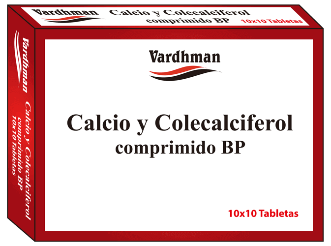 VITAMINA Y MINERAL Información del ProductoVía de Administracion: OralIndicaciones: Tratamiento de Los estados carenciales de Calcio y Vitamina D. Suplemento de Calcio y Vitamina D como terapia coadyuvante en el tratamiento específico de la osteoporosis (postmenopáusica, senil, terapia corticosteroidea) en pacientes con riesgo elevado de sufrir deficiencias combinadas de Calcio y Vitamina D o en aquellos en los que esta deficiencia está confirmada.Presentación: Caja con 30, 100 y 1000 (institucional) tabletas en blíster e inserto; caja con 1 frasco con 100 tabletas e inserto.Modalidad de Venta: Venta Libre.Marca de Referencia: CALPLEX®, CALTRATE-D®, CALCIO-VIT D3®Laboratorio Fabricante: VARDHMAN EXPORTS INDIA